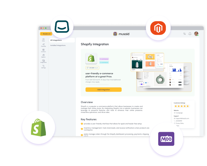 Musaid seamlessly integrates with your existing tools, such as CRMs and other business platforms, eliminating the need to switch between systems and duplicate data entry. With Musaid as your one-stop shop for all your communication needs, there's no need for multiple software solutions.